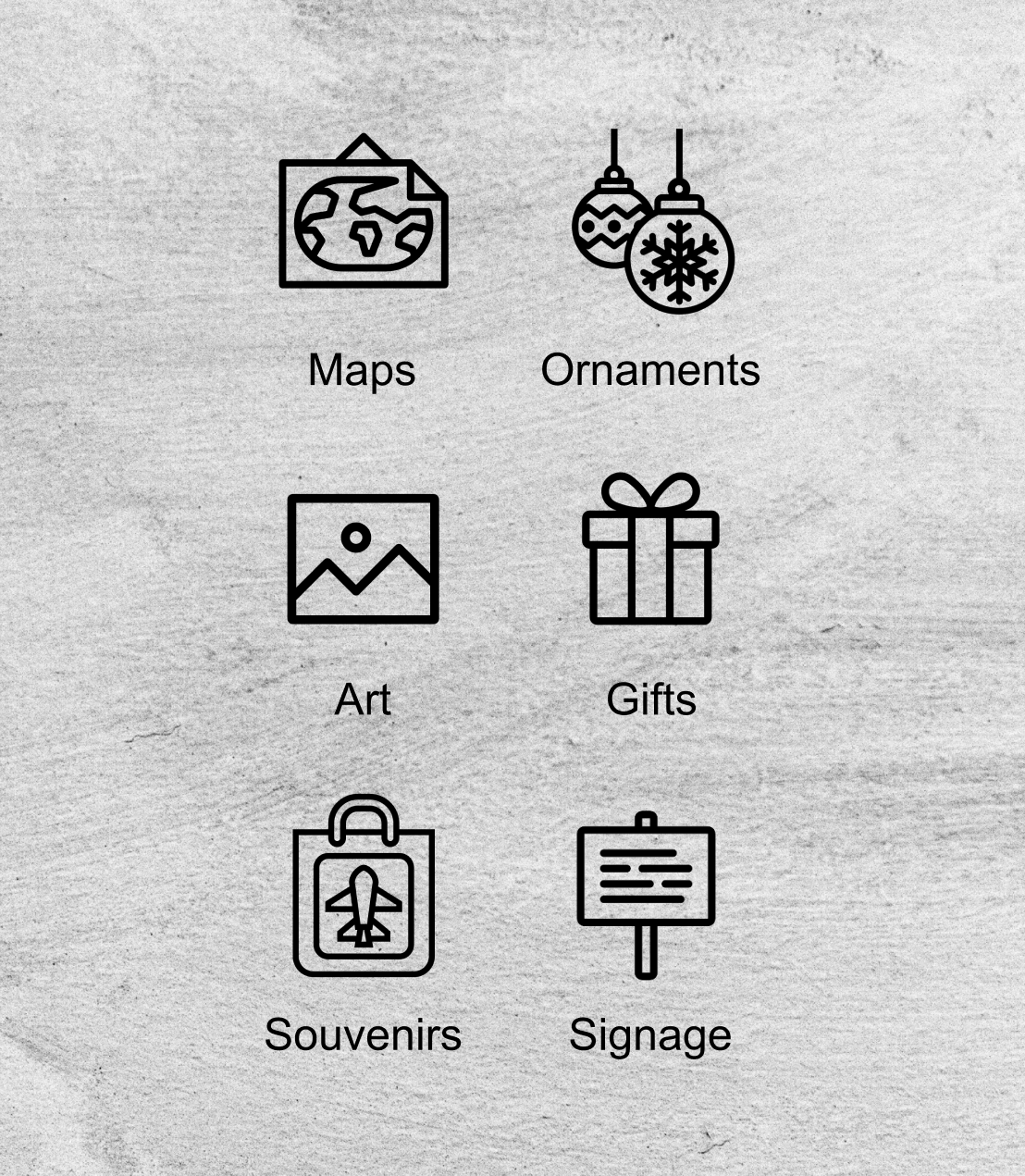 You can find a variety of personalized design pieces at our shop ranging from maps to ornaments and more!